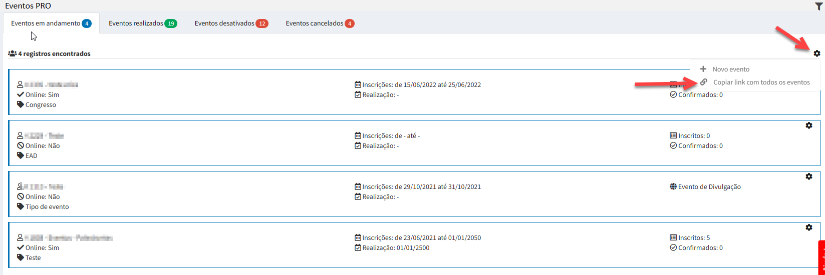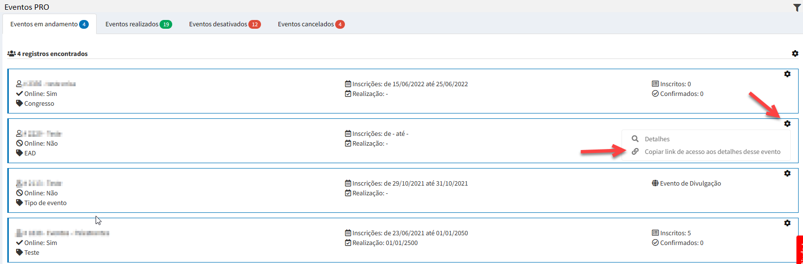 - Copiar link de acesso a listagem com todos os eventos e também link de acesso aos detalhes de cada evento.